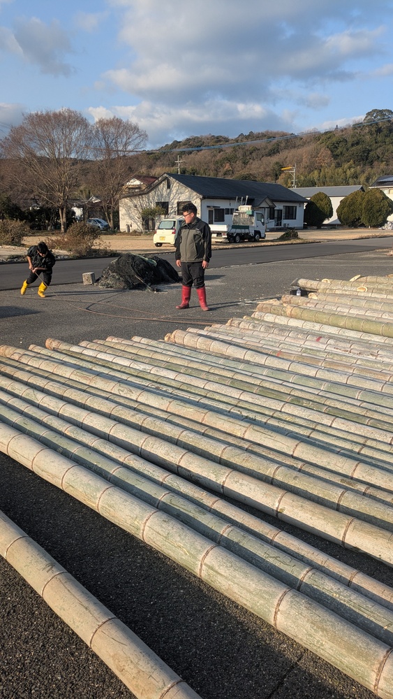 お知らせ 2026/02/02 今年の目標!!ブログ更新1回目 毎年恒例行事。鹿児島から竹が届きました🎍小型定置網で使います。竹の節を割っちたてやすくします。今年はどんな地魚がみれるか楽しみですワクワク